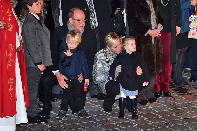 Ksiaze Albert i ksiezna Charlene z dziecmi na ceremonii - Sainte Devote