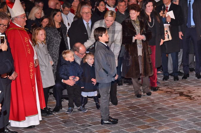 Ksiaze Albert i ksiezna Charlene z dziecmi na ceremonii - Sainte Devote