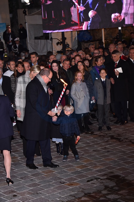 Ksiaze Albert i ksiezna Charlene z dziecmi na ceremonii - Sainte Devote