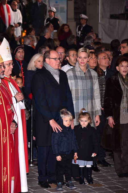 Ksiaze Albert i ksiezna Charlene z dziecmi na ceremonii - Sainte Devote