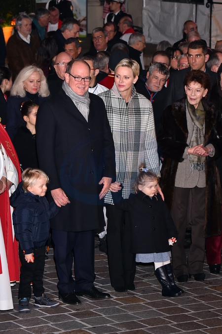 Ksiaze Albert i ksiezna Charlene z dziecmi na ceremonii - Sainte Devote