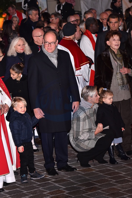 Ksiaze Albert i ksiezna Charlene z dziecmi na ceremonii - Sainte Devote