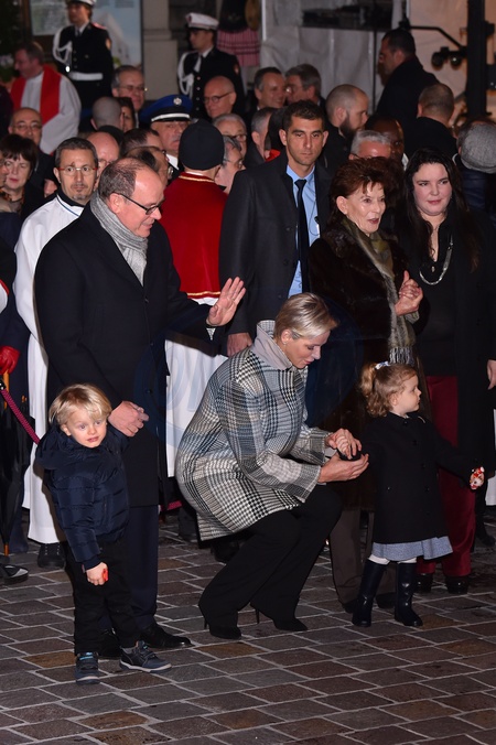Ksiaze Albert i ksiezna Charlene z dziecmi na ceremonii - Sainte Devote