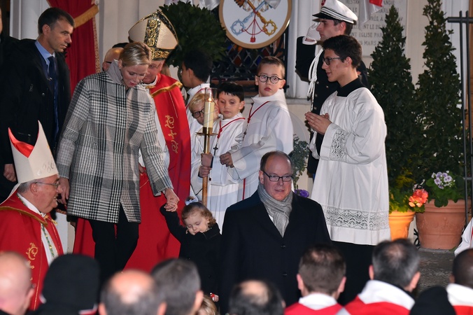 Ksiaze Albert i ksiezna Charlene z dziecmi na ceremonii - Sainte Devote