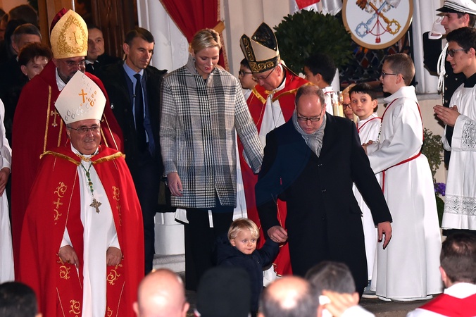 Ksiaze Albert i ksiezna Charlene z dziecmi na ceremonii - Sainte Devote