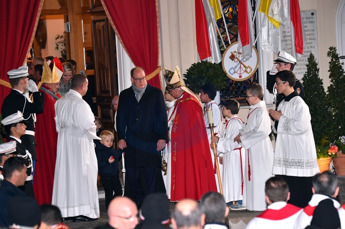 Ksiaze Albert i ksiezna Charlene z dziecmi na ceremonii - Sainte Devote
