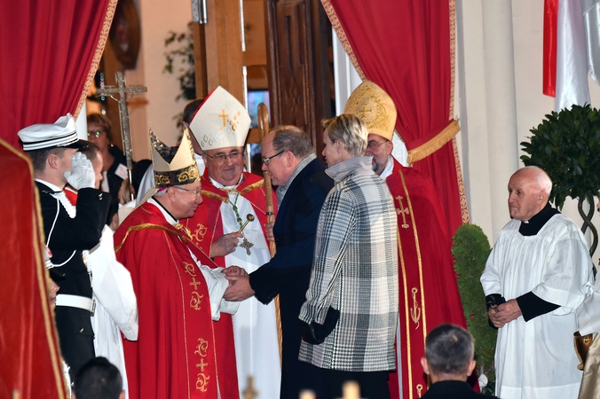 Ksiaze Albert i ksiezna Charlene z dziecmi na ceremonii - Sainte Devote