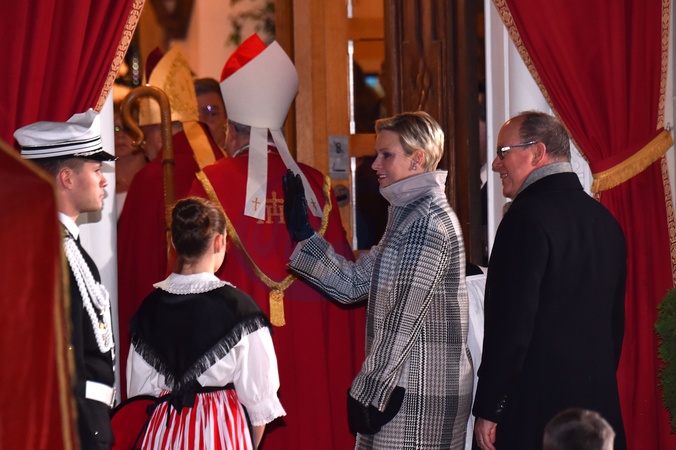 Ksiaze Albert i ksiezna Charlene z dziecmi na ceremonii - Sainte Devote