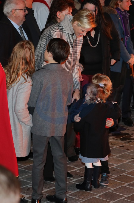 Ksiaze Albert i ksiezna Charlene z dziecmi na ceremonii - Sainte Devote