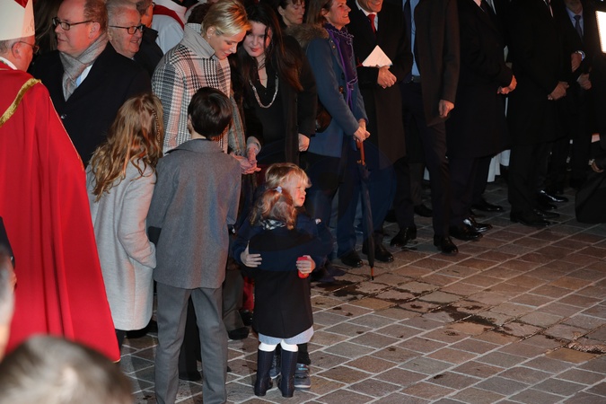 Ksiaze Albert i ksiezna Charlene z dziecmi na ceremonii - Sainte Devote