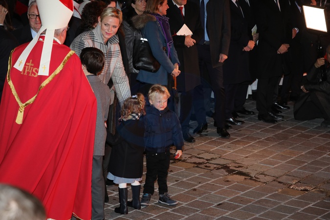 Ksiaze Albert i ksiezna Charlene z dziecmi na ceremonii - Sainte Devote