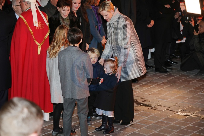 Ksiaze Albert i ksiezna Charlene z dziecmi na ceremonii - Sainte Devote