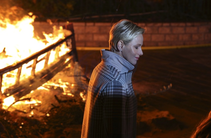 Ksiaze Albert i ksiezna Charlene z dziecmi na ceremonii - Sainte Devote