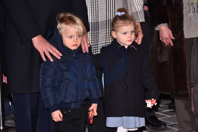 Ksiaze Albert i ksiezna Charlene z dziecmi na ceremonii - Sainte Devote