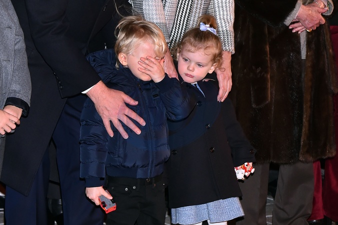 Ksiaze Albert i ksiezna Charlene z dziecmi na ceremonii - Sainte Devote