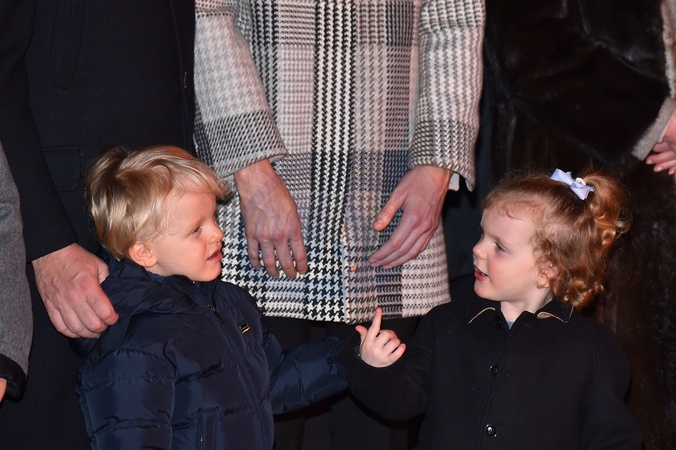 Ksiaze Albert i ksiezna Charlene z dziecmi na ceremonii - Sainte Devote