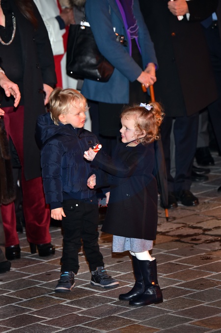 Ksiaze Albert i ksiezna Charlene z dziecmi na ceremonii - Sainte Devote