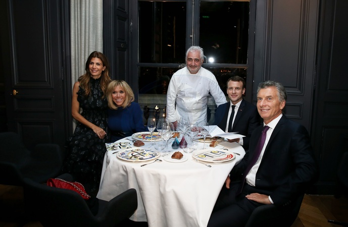 Emmanuel Macron, Brigitte Macron i pierwsza para Argentyny na kolacji u Guy Savoy