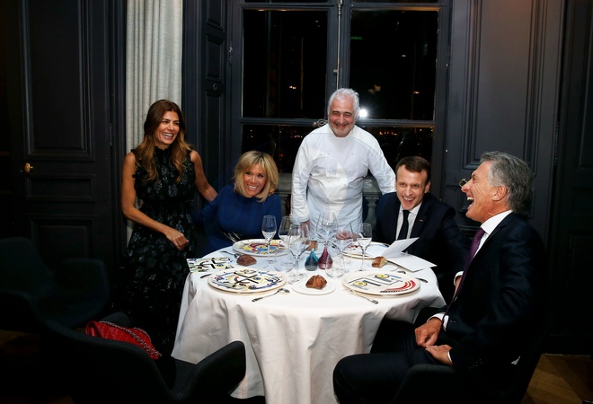 Emmanuel Macron, Brigitte Macron i pierwsza para Argentyny na kolacji u Guy Savoy