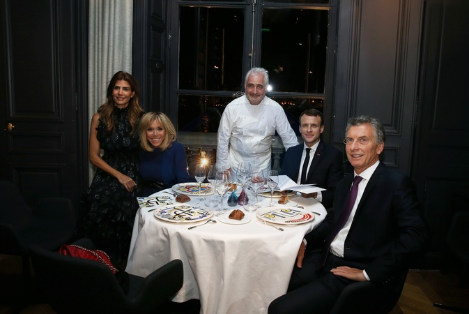 Emmanuel Macron, Brigitte Macron i pierwsza para Argentyny na kolacji u Guy Savoy