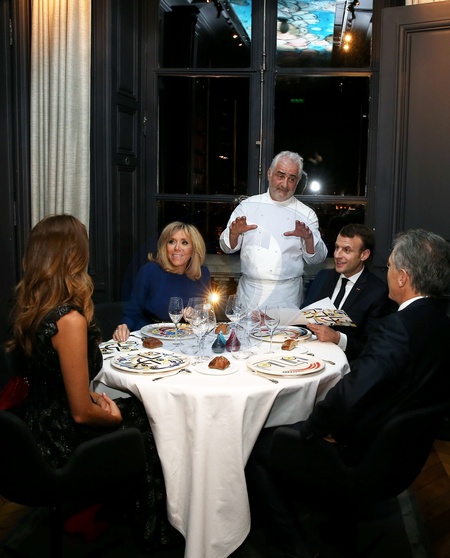 Emmanuel Macron, Brigitte Macron i pierwsza para Argentyny na kolacji u Guy Savoy