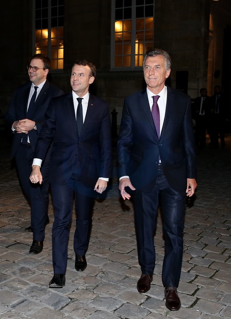 Emmanuel Macron, Brigitte Macron i pierwsza para Argentyny na kolacji u Guy Savoy