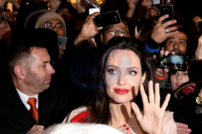 Angelina Jolie w tlumie fanow przed Domem Mody Guerlain