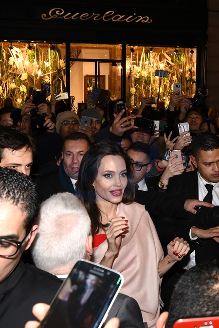 Angelina Jolie w tlumie fanow przed Domem Mody Guerlain