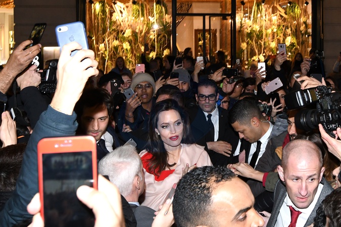 Angelina Jolie w tlumie fanow przed Domem Mody Guerlain