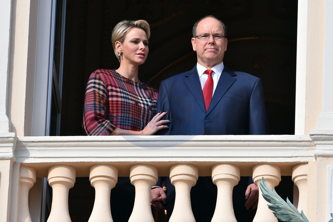 Ksiezna Charlene i ksiaze Albert na balkonie palacu podczas Sainte Devote