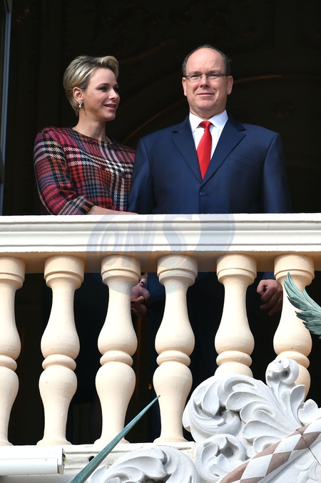 Ksiezna Charlene i ksiaze Albert na balkonie palacu podczas Sainte Devote
