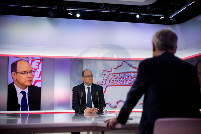 Ksiaze Albert pudruje sie przed wystapieniem w tv