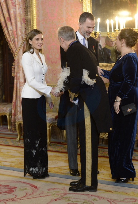 Krolowa Letizia i krol Filip na przyjeciu dla ambasadorow