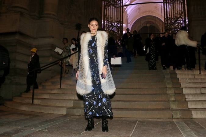 Olivia Palermo w futrzanej kamizelce w drodze na pokaz Giambattista Valli