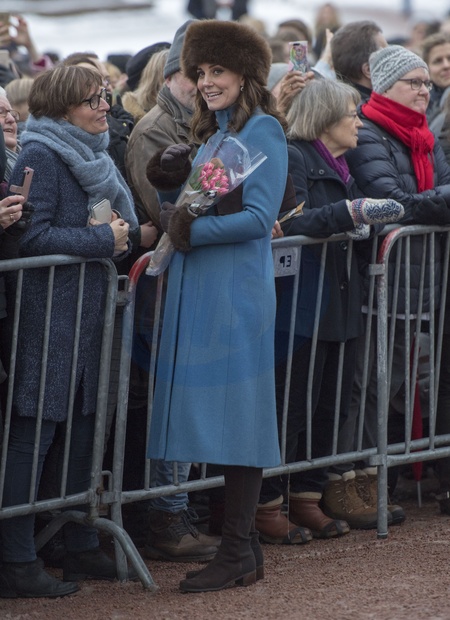 Ksiezna Kate w futrzanej czapie i ksiaze William w Norwegii