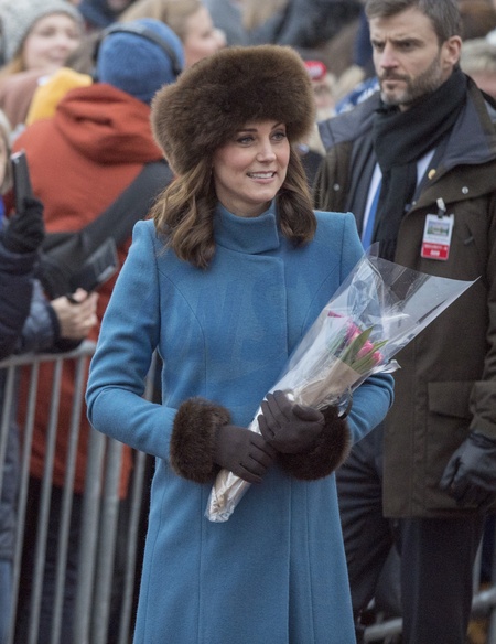 Ksiezna Kate w futrzanej czapie i ksiaze William w Norwegii