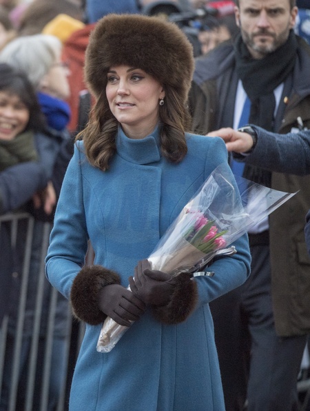 Ksiezna Kate w futrzanej czapie i ksiaze William w Norwegii