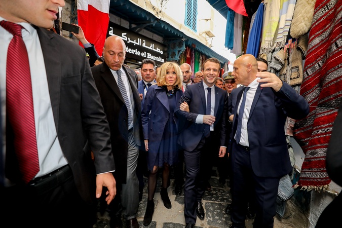 Brigitte Macron i Emmanuel Macron podczas wizyty w Tunezji