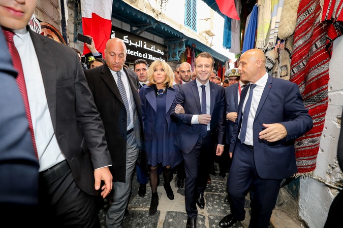 Brigitte Macron i Emmanuel Macron podczas wizyty w Tunezji