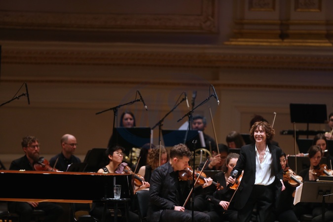 Jane Birkin w garniturze i trampkach na scenie
