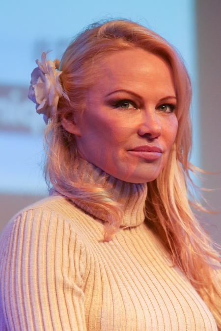Pamela Anderson z kwiatem we wlosach podczas 25. edycji Paris Manga & Sci-Fi Fair