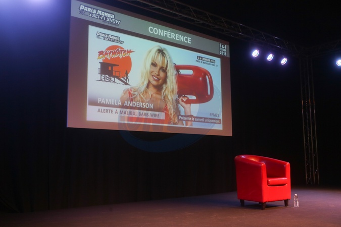 Pamela Anderson z kwiatem we wlosach podczas 25. edycji Paris Manga & Sci-Fi Fair