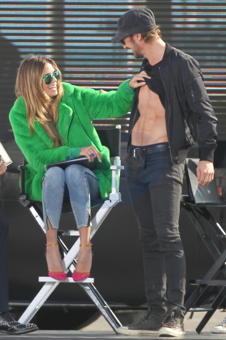 Heidi Klum w zielonym futerku na planie Next Top Model