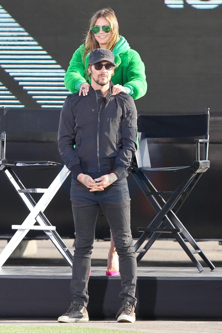 Heidi Klum w zielonym futerku na planie Next Top Model