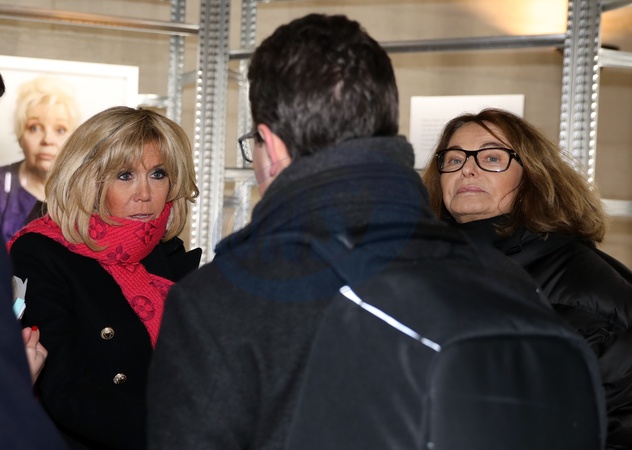 Brigitte Macron w czerwonym szalu Louis Vuitton na wystawie Detenus Bettina Rheims
