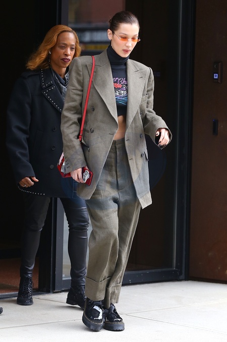 Bella Hadid w garniturze oversize i martensach