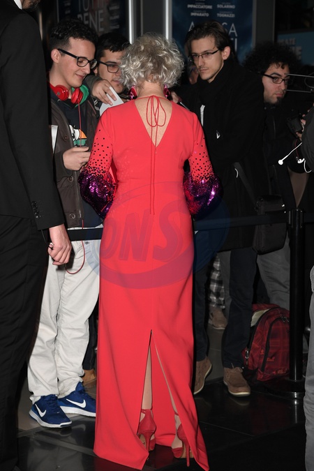 Helen Mirren w czerwonej sukni podczas Black carpet of film Winchester