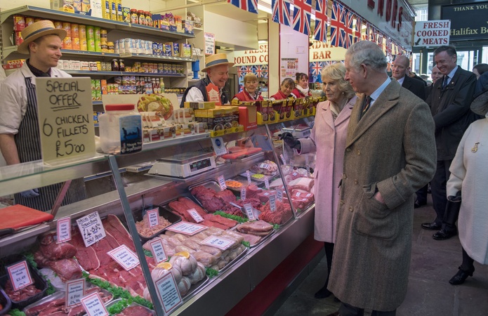 Ksiezna Camilla i ksiaze Karol kupuja zelki i mieso