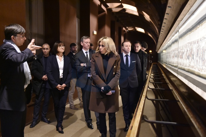 Brigitte Macron podczas wizyty w Musee de la Tapisserie