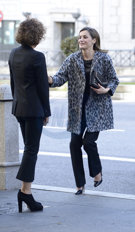 Krolowa Letizia w plaszczu we wzory leoparda i w skorzanej bluzce